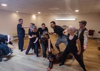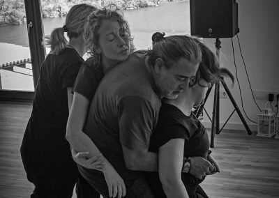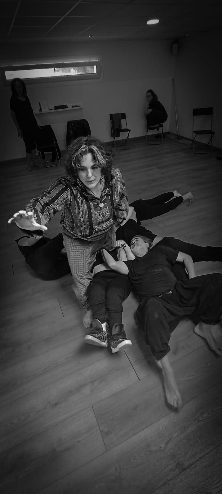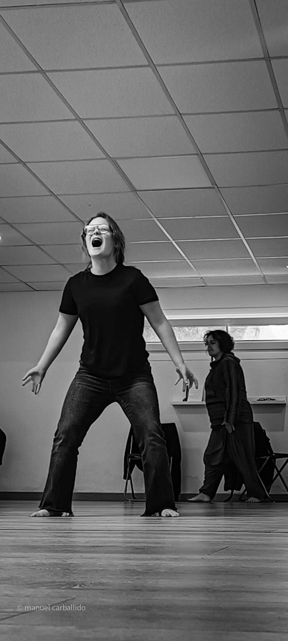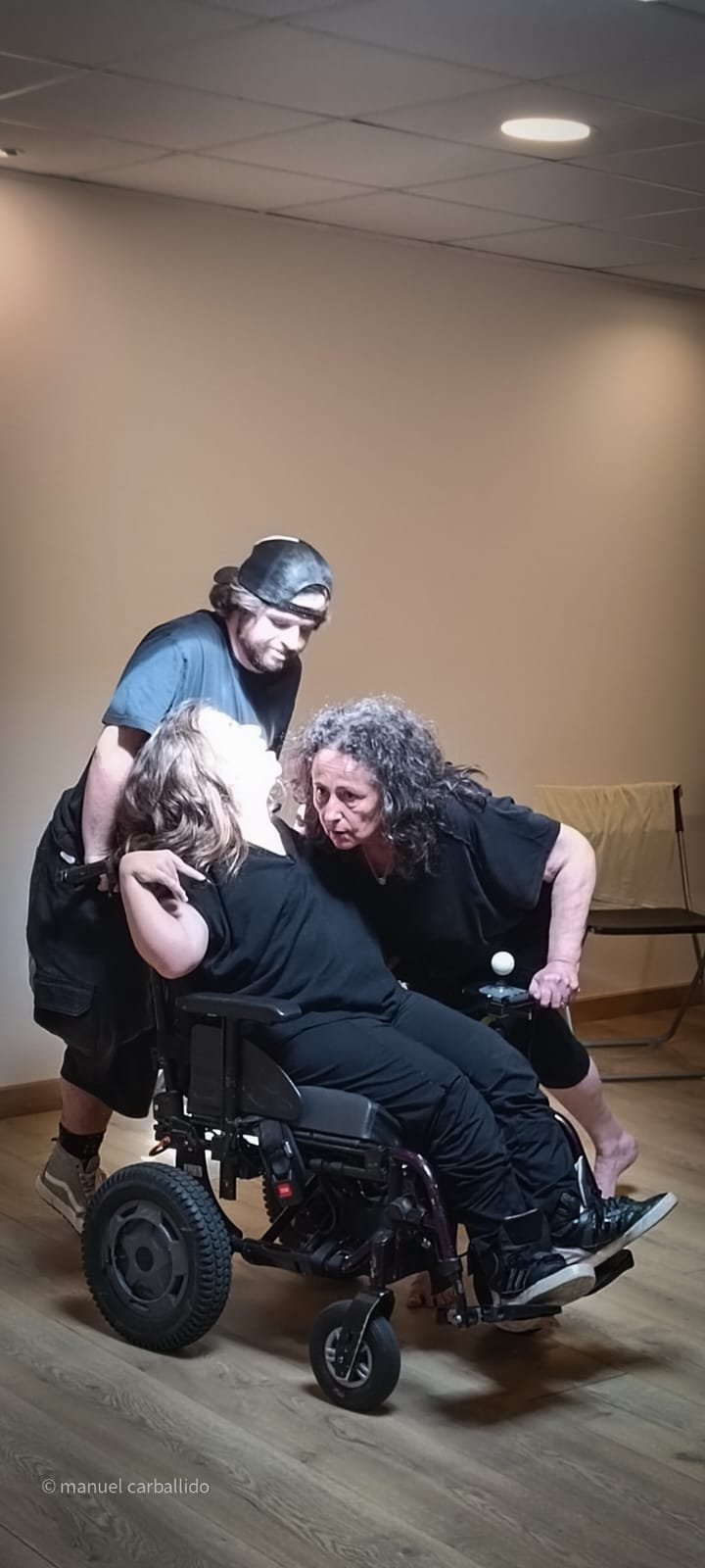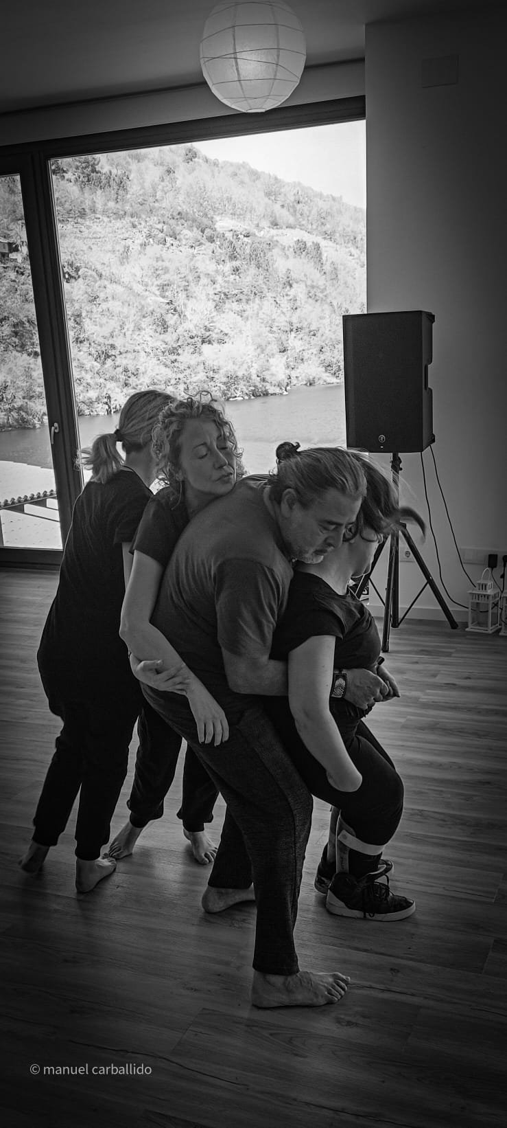 16:30 h recollida de usuarios da AIND 16:00 h Visita e Almacenamento Fundación Luis Seoane, contido. Lema da exposición fotográfica. Desenvolvemento do obradoiro de creación arte-terapéutica presencial e movemento inclusivo ata as 20:00 h. 1.-Traballo de recoñecemento do corpo no espazo, revisión de articulacións e músculos, quecemento das extremidades para posteriormente facilitar o movemento na psicomotricidade fina dos traballos artísticos posteriores. 2.-Exercicios de respiración e relaxación respiratoria empregando o propio espazo do museo como punto de ancoraxe. 3.-Este obradoiro de movemento inclusivo desenvolveuse tomando como slogan a arquitectura do museo, ou inspiración para a experiencia estética, concretamente o patio interior e a exposición fotográfica así como o ancho total da sala de fundación. Traballamos o recoñecemento cego do corpo a través das emocións que alberga. Busca de bloqueos musculares, áreas de carga emocional no corpo e identificación de articulacións con movemento limitado. Identificación da propia emoción na zona cervical e cervical. Traballamos a libre creación de movementos e Micro movementos das articulacións superiores independentes, en segundo lugar traballamos a coordinación dos movementos libres das extremidades superiores e inferiores. Estes movementos creados polos propios usuarios foron levados a unha intervención co tacto e o propio corpo no espazo do museo, atendendo aos ritmos musicais que acompañaban o exercicio. Traballouse a visión e a percepción sensorial do espazo. Finalmente, elaborouse unha coreografía inclusiva e grupal de intervención no espazo museístico, tendo en conta as capacidades físicas de cada usuario, un traballo de cohesión e integración do individuo ao grupo. 4.-No obradoiro de laboratorio cun amplo buffet de materiais, libre elección de materiais, e desenvolvemento creativo libre tipo Stern. Cada usuario, individualmente ou en grupo, desenvolveu a súa produción artística inspirada no obradoiro de movemento e a súa experiencia vital co movemento individual e colectivo, desenvolvendo unha produción artística que neste caso moitos traballaron en parella por decisión propia.5.-Unha vez rematadas as producións artísticas, a esencia do que cada usuario percibiu a través da súa propia experiencia estética transfórmase nun texto emocional ou experiencia vital ligada ao que a peza lle transmitiu. 6.-Volvemos ao espazo arquitectónico do museo e intervimos, cada usuario escolle onde deposita a peza da súa produción artística, e fai brevemente seu o espazo museístico. 7.-Para finalizar, cada usuario que o desexe expresa con palabras a súa experiencia durante o obradoiro de movemento inclusivo e comparte co grupo a súa relación co movemento, as dificultades ou frustracións no caso de persoas con limitacións físicas de movemento, os seus momentos Eureka, mentres bailaron, mentres eles creaban, sós, xuntos, o que os sorprendeu e o que os emocionou. De 20:00 a 20:30 horas, recollida e devolución dos seus usuarios á AIND. Participantes: AIND 12 Adafg 3 Centro de Menores 3 Aberto diverso 3