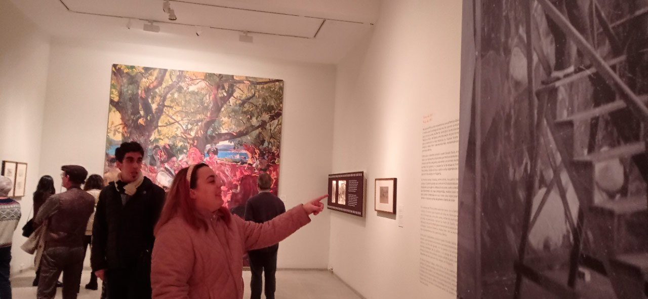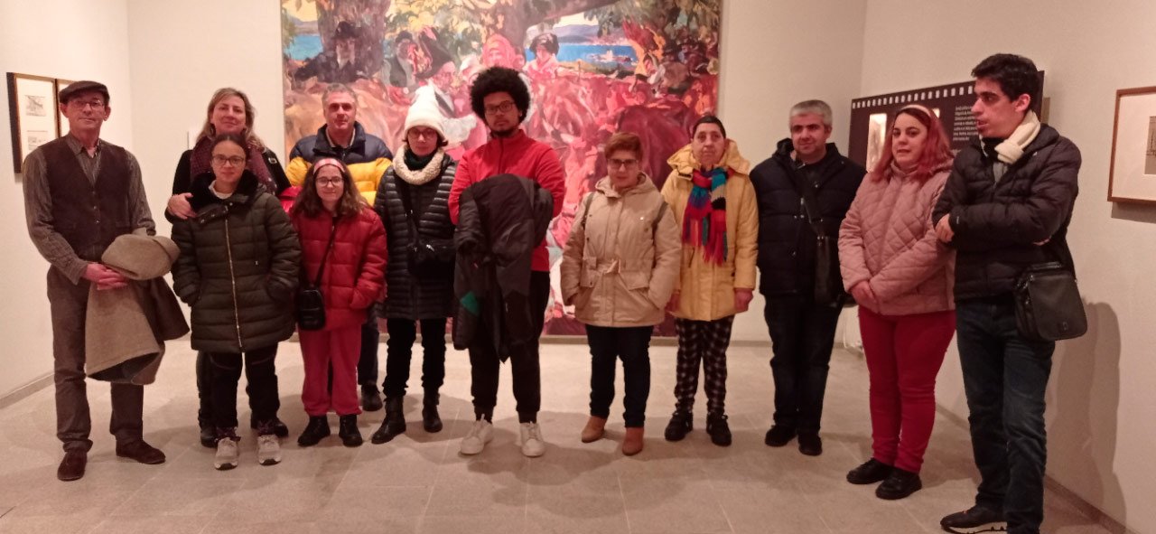 16:00 horas Visita y Consigna Museo de Bellas Artes SOROLLA y expo patio central. Desarrolo del taller inclusivo de creación con metodología arteterapéutica in situ hasta las 20:00 horas. 1-Trabajo de reconocimiento del cuerpo en el espacio, repaso de articulaciones y musculatura, calentamiento de extremidades para facilitar el posterior trabajo de psicomotricidad fina en el proceso de creación artística. 2.-Ejercicios de respiración y relajación respiratoria usando como punto de anclaje el propio espacio del museo. 3.-Visita, visualización y análisis de la exposición SOROLLA. Y también selección de espacios arquitectónicos dentro del museo por parte de cada usuario. 4.-En el taller anexo con un gran bufete de materiales libre elección de los mismos, y libre desarrollo creador tipo Stern. Cada usuario individual o en grupos, desarrolló dos producciones artísticas una inspirada en la propia exposición de SOROLLA y otra inspirada en el espacio arquitectónico del museo elegido. 5.-Unha vez rematadas as producións artísticas, a esencia do que cada usuario percibiu a través da súa propia experiencia estética transfórmase nun texto emocional ou experiencia vital ligada ao que a peza lle transmitiu. 6.-Volvemos ao espazo arquitectónico e intervimos, cada usuario escolle onde coloca a peza da súa produción artística, e fai seu brevemente o espazo museístico. 7.-Na clausura, cada usuario que o desexe expresa con palabras a súa experiencia durante o obradoiro e comparte co grupo os seus procesos de creación, a relación e dificultades co material, os seus momentos Eureka ao crear, o que o sorprendeu e o que emocionou. el. De 20:00 a 20:30 horas, recollida e devolución dos seus usuarios á AIND. Dobre peche. Peche do obradoiro e peche do proceso