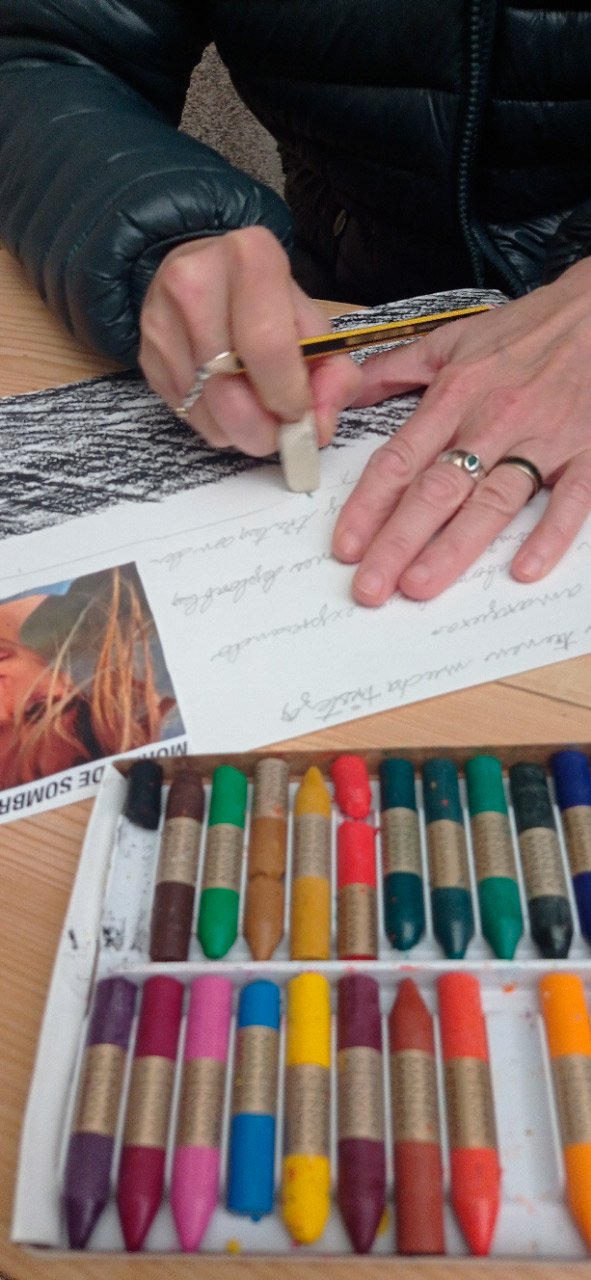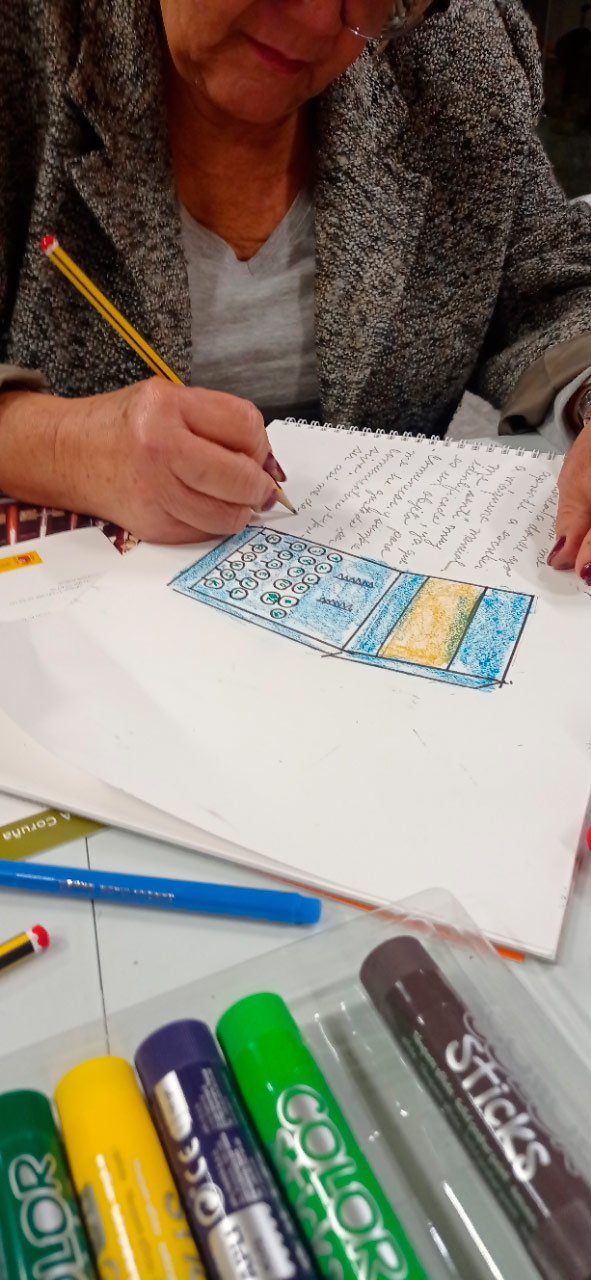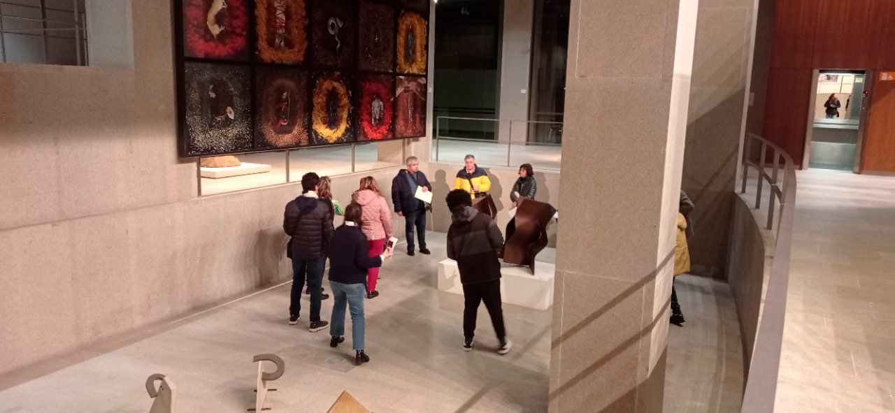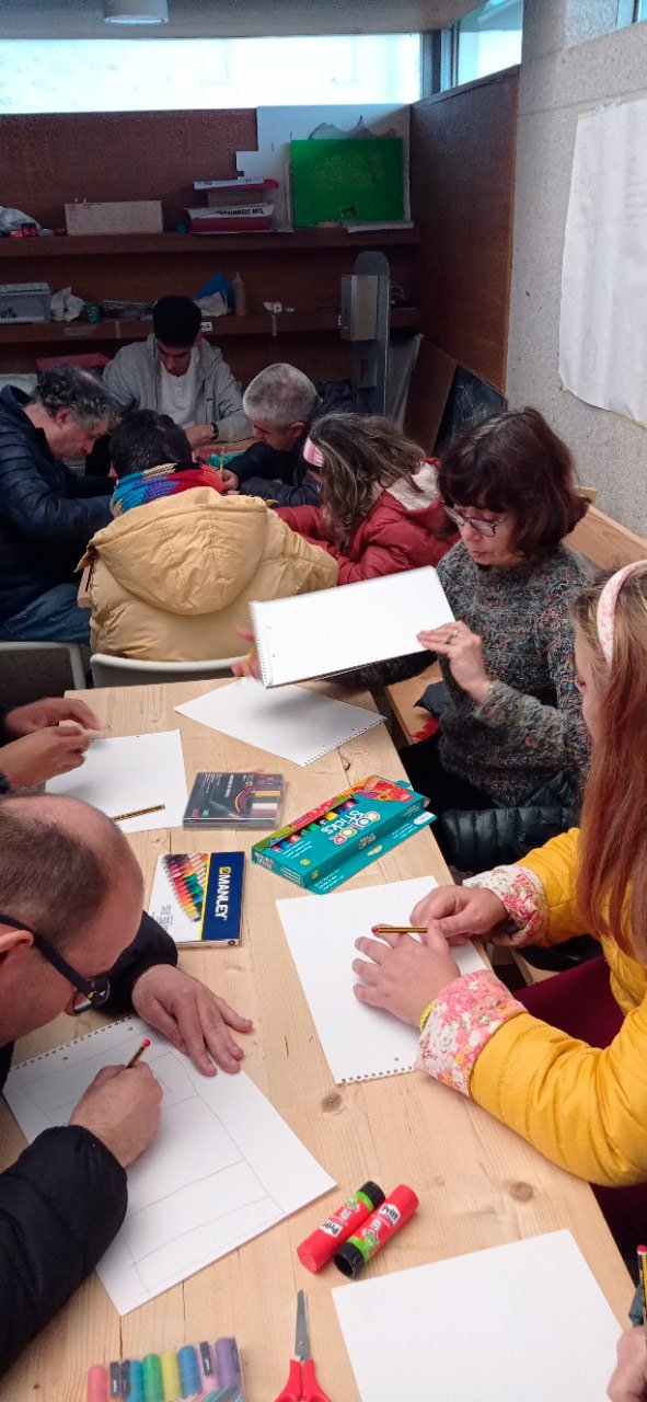 16:00 h Visita e Almacenamento do Museo Histórico Militar, terra firme Desenvolvemento do obradoiro de creación arte-terapéutica no lugar ata as 20:00 h. 1-Traballo de recoñecemento do corpo no espazo, revisión de articulacións e músculos, quecemento das extremidades para facilitar o posterior traballo da motricidade fina no proceso de creación artística. 2.-Exercicios de respiración e relaxación respiratoria empregando o propio espazo do museo como punto de ancoraxe. 3.-visita, visualización e análise da arquitectura do museo. Selección de espazos arquitectónicos dentro do museo por parte de cada usuario. 4.-No obradoiro de laboratorio cun amplo buffet de materiais, libre elección de materiais, e desenvolvemento creativo libre tipo Stern. Cada usuario, individualmente ou en grupo, desenvolveu a súa produción artística inspirada na propia arquitectura do museo. 5.-Unha vez rematadas as producións artísticas, a esencia do que cada usuario percibiu a través da súa propia experiencia estética transfórmase nun texto emocional ou experiencia vital ligada ao que a peza lle transmitiu. 6.-Volvemos ao espazo arquitectónico e intervimos, cada usuario escolle onde coloca a peza da súa produción artística, e fai seu brevemente o espazo museístico.7.-En el cierre cada usuario que lo desea expresa desde la palabra su experiencia durante el taller y comparte con el grupo sus procesos de creación, la relación y dificultades con el material, sus momentos Eufemia mientras creaba, lo que le ha sorprendido y lo que le ha movido. De 20:00 a 20:30 recogida y devolución a AIND de sus usuarios. Participantes: AIND 12 adafag 3 Centro de menores 3 Diversos abierto 7 21 de decembro Xoves 16:00 h Visita e deposito da Fundación Luis Seoane Expsocición Galicia da CEO. Desenvolvemento do obradoiro de creación inclusiva con metodoloxía arte terapéutica in situ ata as 20:00 h. Este obradoiro inclusivo dividiuse en dúas partes. Un traballo para reforzar a autoestima con exercicios de voz e PNL, inspirado nos audios de voces cantantes de Cabo Verde da exposición COSTA e unha segunda parte de traballo inspirado na Exposición Fotográfica da sala 2. 1.-Traballo de recoñecemento da corpo no espazo, revisión de articulacións e músculos, quecemento de extremidades para posteriormente facilitar o movemento na psicomotricidade fina do traballo artístico posterior. Exercicios de respiración e relaxación respiratoria empregando o propio espazo do museo como punto de ancoraxe. 2.-Entramos na sala escura e traballamos a escoita de voces melódicas caboverdianas da exposición audiovisual COSTA Traballamos exercicios para alongar o fluxo respiratorio. Afinación vocálica. Afirmacións individuais de PNL e afirmacións grupais para reforzar a autoestima. Unha vez fóra da sala escura, co-creamos as nosas propias composicións de voz inspiradas nas nosas emocións, unha obra coral con movemento das extremidades superiores para facilitar a regulación do cortisol, e proporcionar aos usuarios ferramentas para a súa vida diaria a través do traballo coa voz que axúdalles a regular a ansiedade. 3.-Visita, visualización e análise dos traballos da exposición fotográfica da sala 2. Selección dunha obra por cada usuario. 4.-No obradoiro de laboratorio cun amplo buffet de materiais, libre elección de materiais, e desenvolvemento creativo libre tipo Stern. Cada usuario, individualmente ou en grupo, desenvolveu a súa produción artística, optando por facelo inspirado na exposición fotográfica da sala 2 ou na súa propia experiencia integrada coa voz. 5.-Unha vez rematadas as producións artísticas, a esencia do que cada usuario percibiu a través da súa propia experiencia estética transfórmase nun texto emocional ou experiencia vital ligada ao que a peza lle transmitiu. 6.-Volvemos ao espazo expositivo e intervimos, cada usuario escolle onde coloca a peza da súa produción artística, e fai seu brevemente o espazo do museo. 7.-Na clausura, cada usuario que o desexe expresa con palabras a súa experiencia durante o obradoiro e comparte co grupo os seus procesos de creación, a relación e dificultades co material, os seus momentos Eureka ao crear, o que o sorprendeu e o que emocionou. el. De 20:00 a 20:30 recollida e devolución á AIND dos seus usuarios. Participantes: AIND 4 ADAFAG 3 VARIOS 10