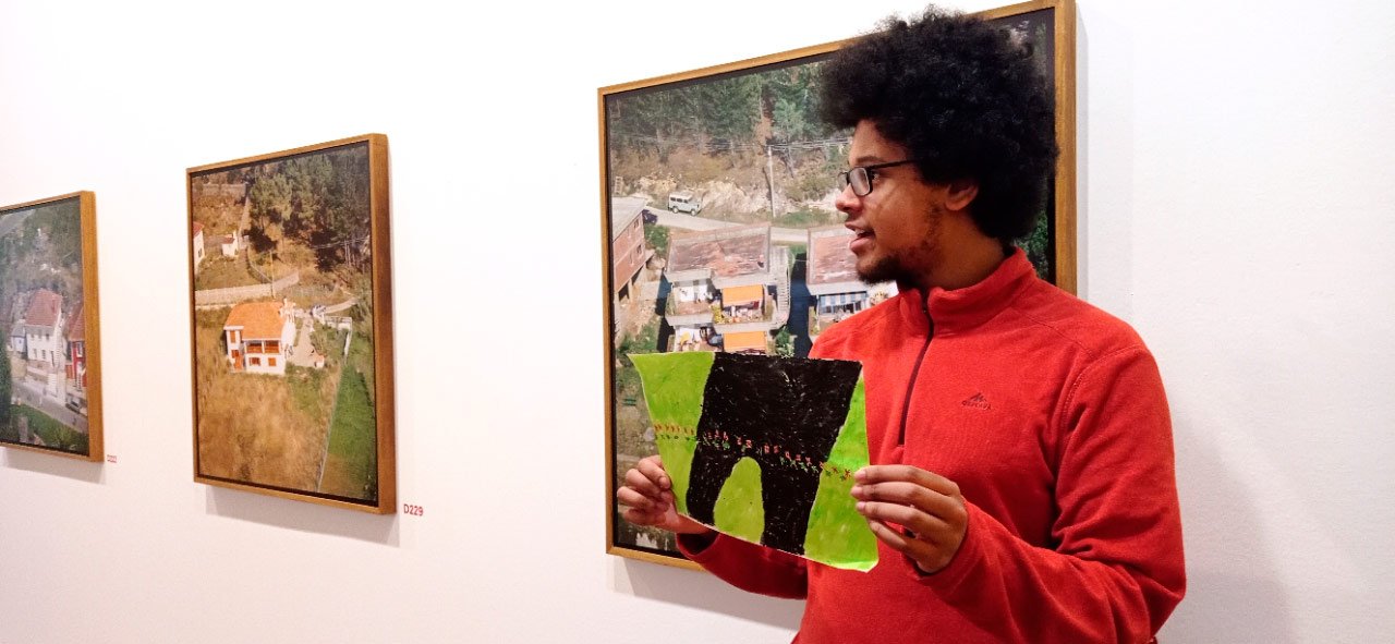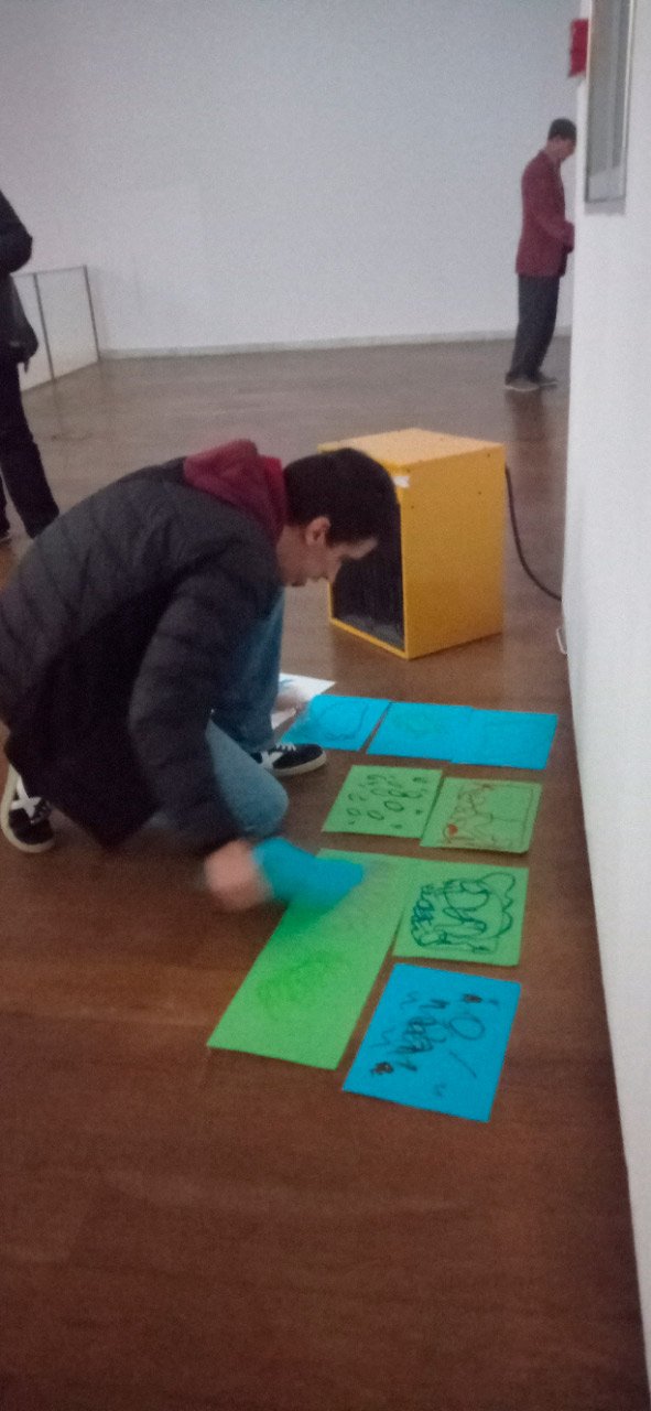 4.-Con impresoras portátiles enviando as fotografías dende o móbil a través de Bluetooth, imprimíronse en papel as bases de traballo para a creación artística dos collages en varios formatos. Nunha sala anexa realizouse o deseño e montaxe dos collages utilizando como material base as fotografías impresas e o catálogo da exposición 5.-Unha vez rematadas as producións artísticas, a esencia do que cada usuario percibiu a través da súa propia experiencia estética. texto emocional ou experiencia vital vinculada ao que lles transmitían as pezas expostas. 6.-Volvemos ao espazo expositivo e intervimos, cada usuario escolle onde coloca a peza da súa produción artística, e fai seu brevemente o espazo do museo. 7.-Na clausura, cada usuario que o desexe expresa con palabras a súa experiencia durante o obradoiro e comparte co grupo os seus procesos de creación, a relación e dificultades co material, os seus momentos Eureka ao crear, o que o sorprendeu e o que emocionou. el. De 20:00 a 20:30 recollida e devolución á AIND dos seus usuarios. Participantes: AIND 12 Adafag 3 Centro de Menores 4 Aberto diverso 816:00 h Visita e Almacenamento da Fundación Barrié. Desenvolvemento do obradoiro de creación inclusiva con metodoloxía arte terapéutica in situ ata as 20:00 h. 1.-Traballo de recoñecemento corporal nun espazo anexo á exposición, revisión de articulacións e músculos, quecemento de extremidades para posteriormente facilitar o movemento na psicomotricidade fina dos traballos artísticos posteriores. 2.-Exercicios de respiración e relaxación respiratoria empregando o propio espazo museístico como punto de ancoraxe. 3.-visita, visualización e análise das obras da exposición. Nesta exposición traballamos a perspectiva fotográfica, con teléfonos móbiles, primeiro fixemos unha pequena masterclass sobre enfocar e traballar os diferentes planos espaciais da fotografía. Selección de obras para fotografar por cada usuario, e os espazos expositivos que quixo fotografar. 4.-Con impresoras portátiles enviando las fotografías desde el móvil por bluetooth se imprimieron en papel formatos variados las bases de trabajo para la creación artística de los collages. En una sala anexa se confeccionó el diseño y montaje de los collages trabajando como material base las fotografías impresas y el catálogo de la exposición 5.-Una vez terminadas las producciones artísticas, se transforma la esencia de lo que cada usuario ha percibido a través de su propia experiencia estética en un texto emocional o de experiencia de vida vinculado con lo que les transmitieron las piezas expuestas. 6.-Regresamos al espacio expositivo e intervenimos el mismo , cada usuario elige donde deposita la pieza de su producción artística, y hace suyo brevemente el espacio del museo. 7.-En el cierre cada usuario que lo desea expresa desde la palabra su experiencia durante el taller y comparte con el grupo sus procesos de creación, la relación y dificultades con el material, sus momentos Eureka mientras creaba, lo que le ha sorprendido y lo que le ha movido. De 20:00 a 20:30 recogida y devolución a AIND de sus usuarios. Participantes: AIND 12 Adafag 3 Centro de Menores 4 Diversos abierto 8
